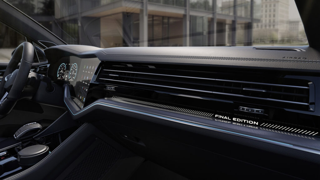 今回の「FINAL EDITION」は、すべてのグレードに特別デザインを採用。後席ドアのウィンドウモールにはレーザー刻印の「FINAL EDITION」ロゴが入り、シフトレバーにも同ロゴをレザーエンボス加工。上級グレード「Elegance」ではマルチカラーアンビエントライトを標準装備し、ダッシュボードやドアシルにもイルミネーション付きの専用ロゴが点灯します。