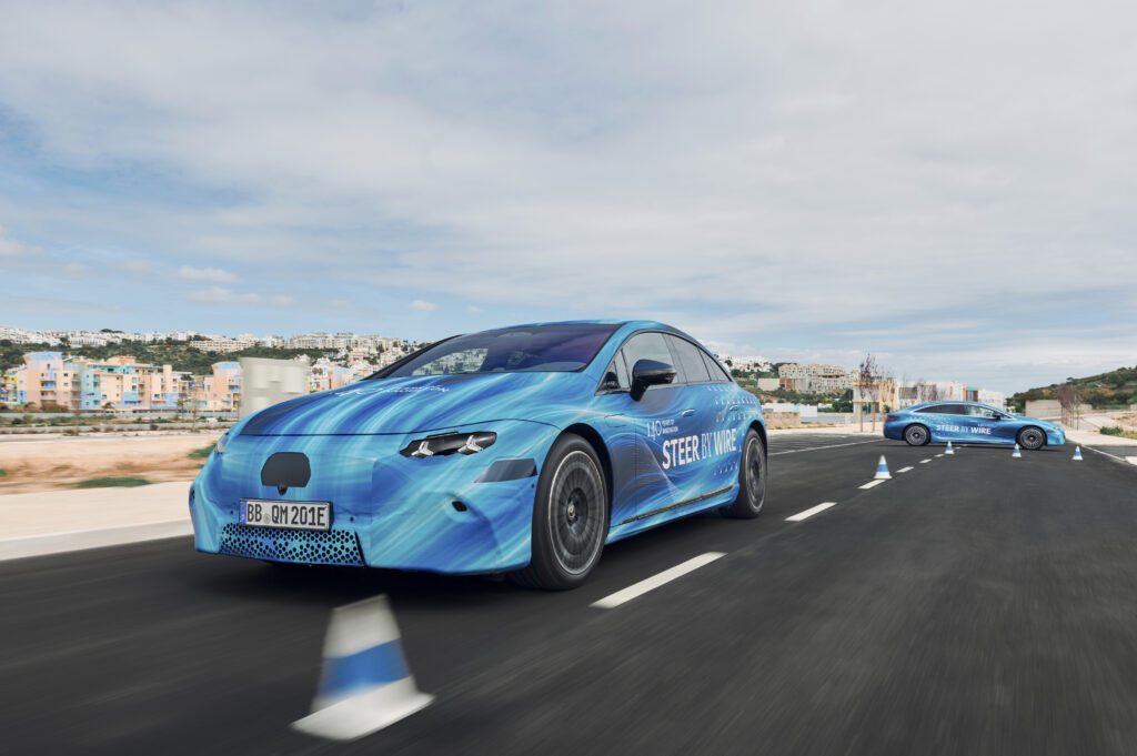安全性に関しても徹底した開発が行われています。このステアバイワイヤシステムは、試験設備やテストコース、公道環境において合計100万km以上のテスト走行を実施しています。また、高精度センサーと高性能制御ユニットに加え、二重化された信号経路を持つ冗長構造を採用しており、万が一のトラブル時でも操舵機能が維持される設計です。さらに極めて稀な完全故障時においても、後輪操舵とESP®による個別ブレーキ制御を組み合わせることで、車両の横方向制御が可能とされています。