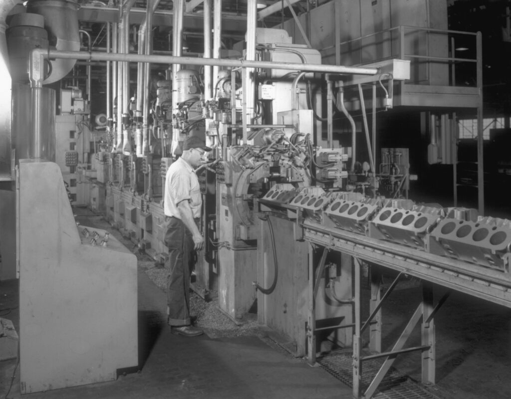 また、このエンジンは単なるスペックの進化にとどまらず、生産拠点にも大きな意味を持っています。スモールブロックはその原点である米国ミシガン州フリントへと回帰しました。1954年7月9日、同地で初のスモールブロックV8が誕生し、翌1955年型コルベットに搭載された4.3リッター(265立方インチ)エンジンは最大195馬力を発揮していました。この小さな始まりから、フリントでは1999年までに4000万基以上が生産され、GM全体では累計1億基以上のスモールブロックV8が製造されています。